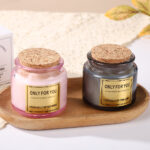 Elevate gifting and home fragrance with our exquisite colored glass candles featuring natural wooden stoppers. Designed for those who appreciate artisanal details and subtle sophistication.