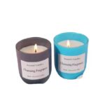 Elevate your space with these exquisite colored glass jar scented candles featuring natural wooden lids. Perfect for creating a warm, inviting atmosphere at home or as thoughtful gifts.