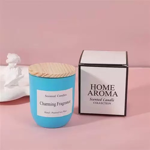Colored Glass Jar Scented Candle with Wooden Lid – Aromatherapy Home Decor & Gift Set