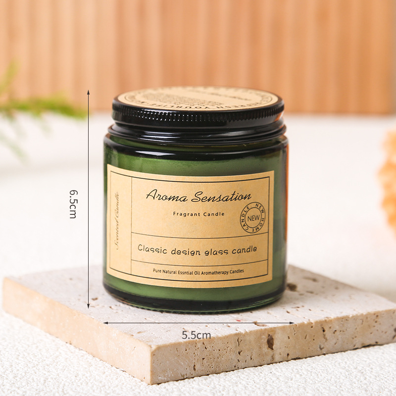 Handmade Black Cap Soy Wax Candle in Jar – Smokeless Aromatherapy Gift with Green Container